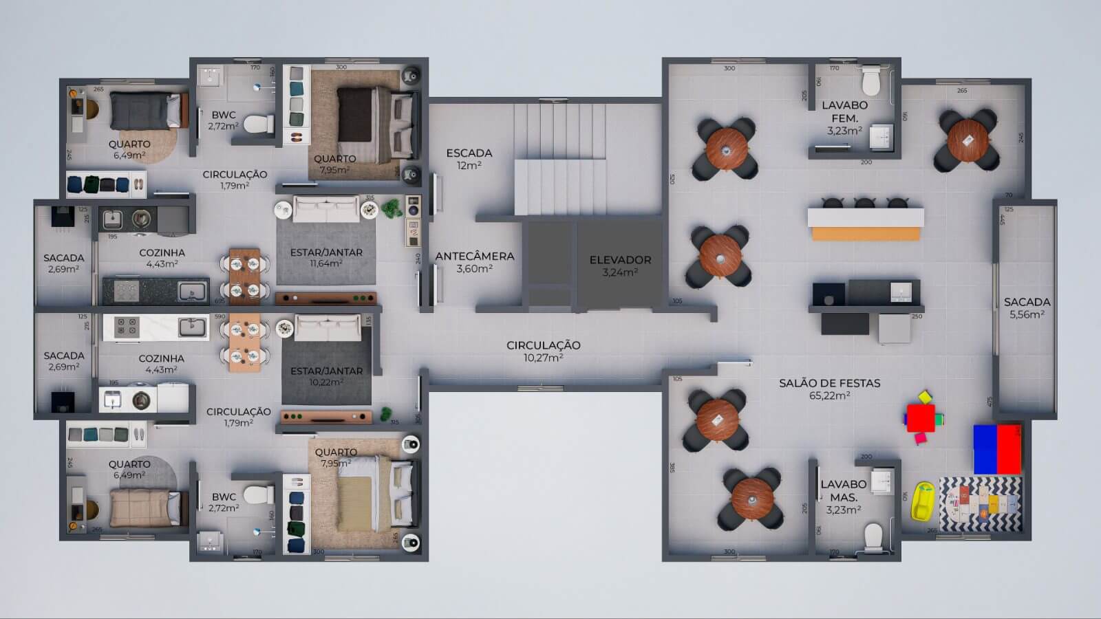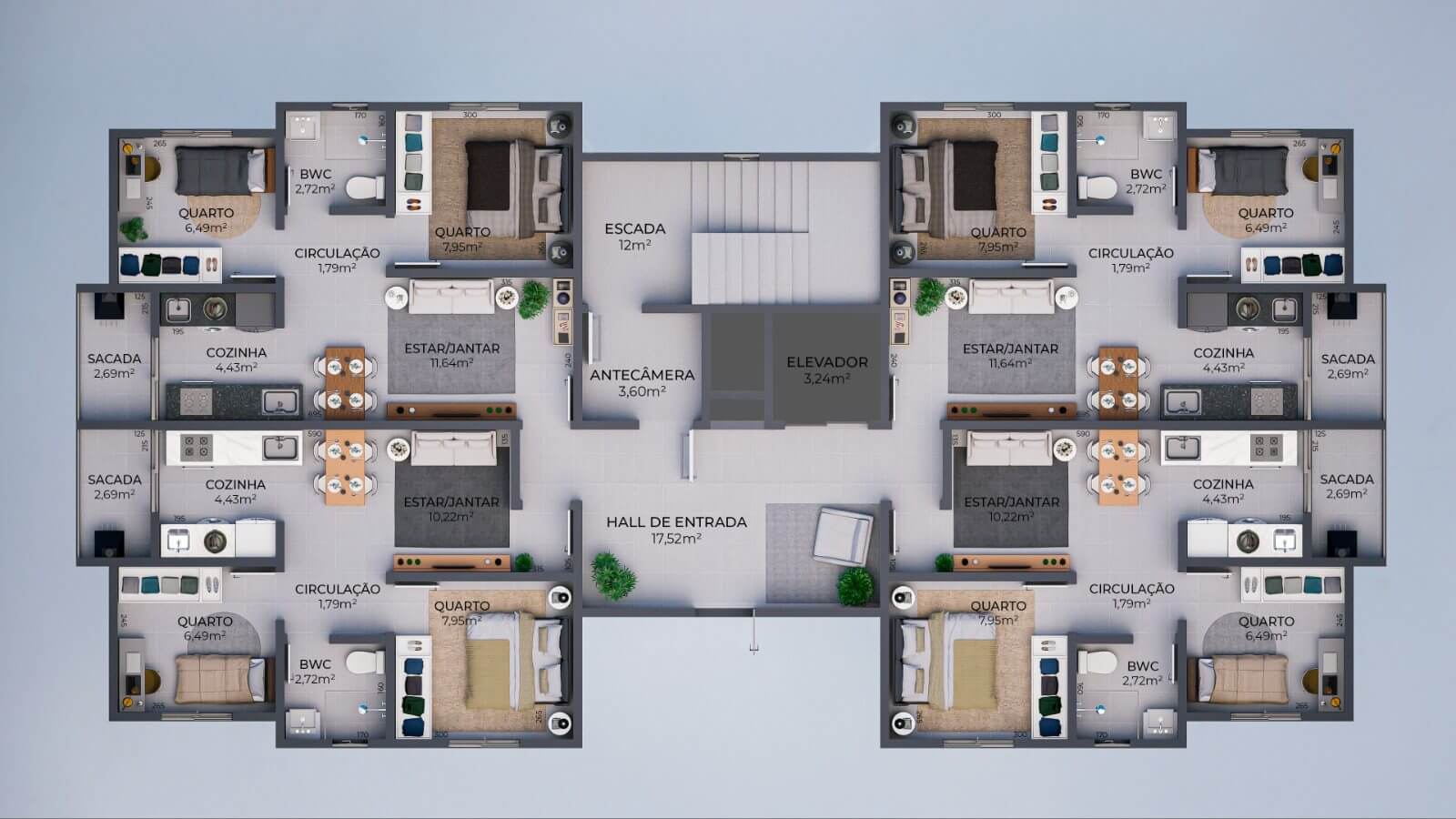 Apartamentos com 2 Dormitórios, banheiro, 1 Vaga de Estacionamento, com 41,84m² a 43,25m² de área privativa. Localizado no Bairro São João Margem esquerda, apenas 400m do Komprão Atacadista.